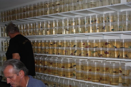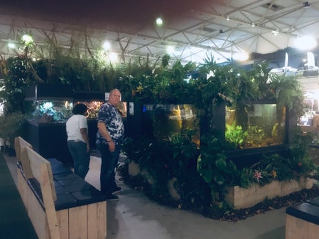 Above: squeezing in some time to have a chat about guppies. Such an event is not just doing sales but also giving information and social talk.