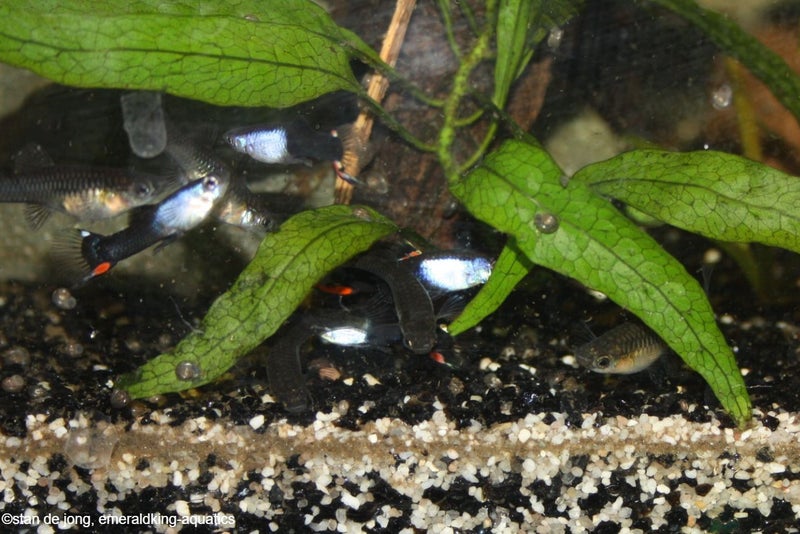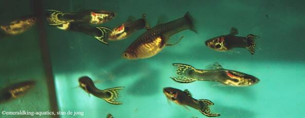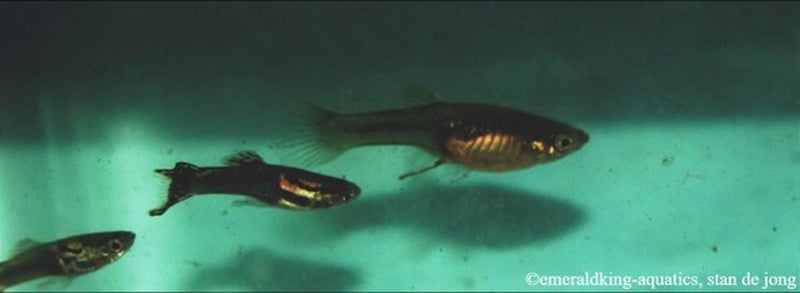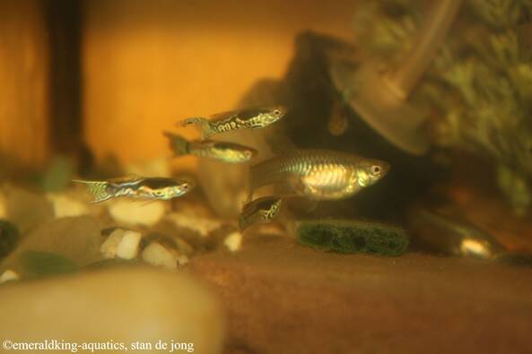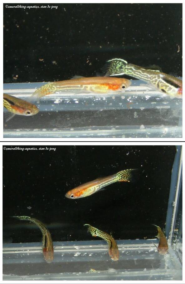 No endler influence, btw... But one of the breeders was the Rio Casanay wildguppy. Also a Ginga strain (Gingas have wildguppy blood as well and no endler influence) and a filigree spadetail guppy. A fourth bloodline remains a secret to others.