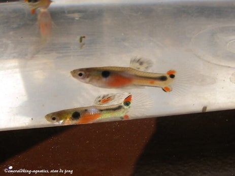 The F1 offspring developed really well and were well build. What has become clear was that the males turned out to have a similar body shape as the Micropoecilia picta male but a color pattern that has similarities with the males of the red chest endler.