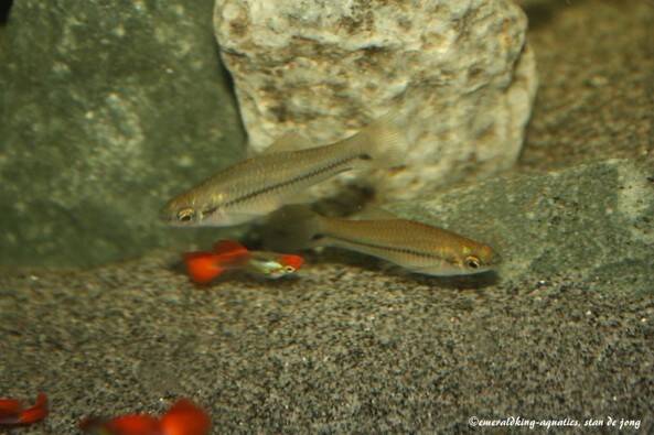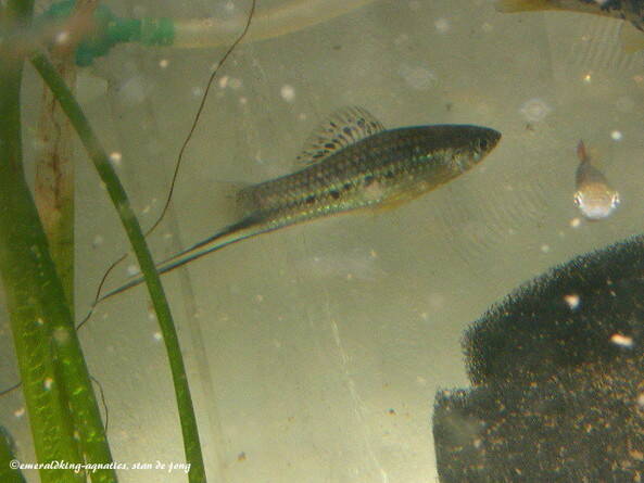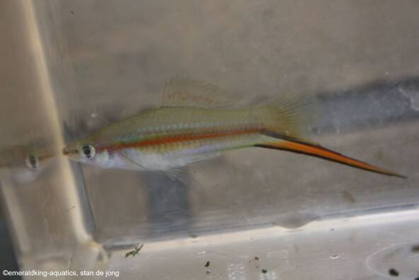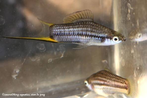 Its name is derived from the the Latin word "signum", which means mark or sign. It refers to the black comma sign on the lower part of the caudal. Both genders have the same comma sign. With fry this comma sign is not visible in the beginning but will show up while they're growing up. The same goes for the lateral line on the sides. This will show up while growing up. Unlike other wild swordtails, there's no diversity of phenotypes. All specimens of this species are complete spitting images of eachother.