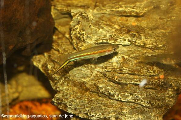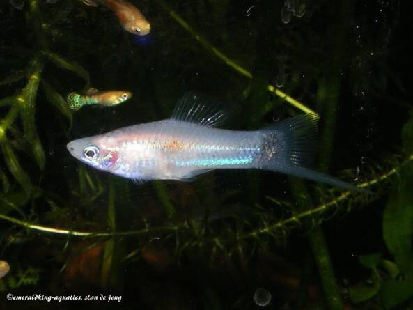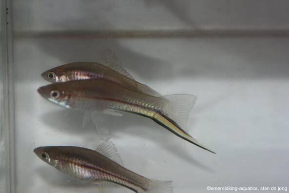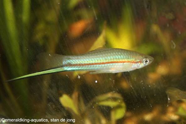 The difference between Alvarezis and Helleriis, is to be found by the number of fin rays and scales in the longitudinal direction. This swordtail species has got 3-4 lateral lines on both sides of the body. And a blue-green shine all over the body when light hits the body. And they've got red points on the dorsal. There are also male specimens that will show some red on the body (these are mostly dominant males).