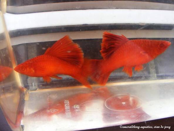 But if you linebreed the most red green males, the red becomes more present in the phenotype. At some point, you'll be able to develop just red swordtails as well. There are even females that will show red on their green body.