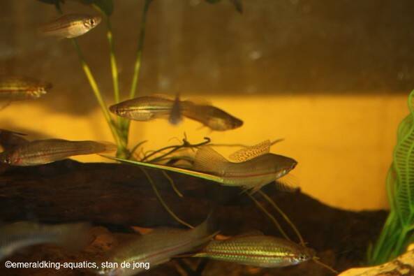 Like some other swordtail species, the male characteristics will show up very late. Even females show a gravid spot for the first time pretty late. Therefore, only with almost full sized 7 cm (max. 10 cm without the length of a sword) specimens, it wil become clear what kind of gender they are.