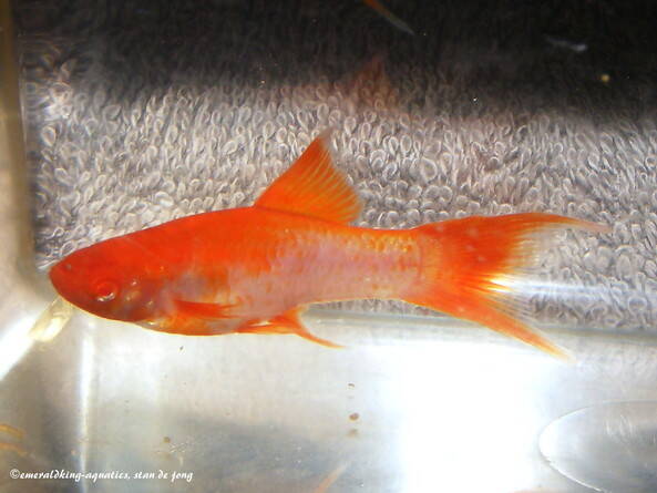 I've used blue swordtails with koi (kohaku) swordtails back in 2015. It took a while before I had real whites. The male above and below does show some orange in its gonopodium (a left over from the koi swordtails).