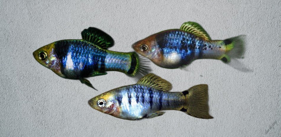 Below: You can clearly see that they're from one batch that I caught. Just one male with iridescent scales.
