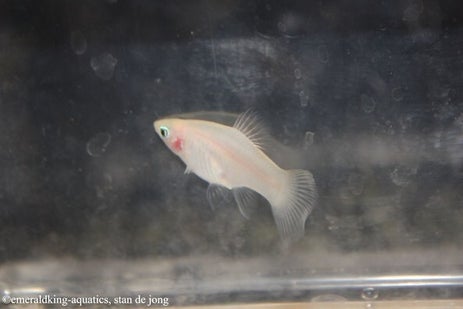 'This is not an albino platy! This is a leucistic platy (white body with black eyes)